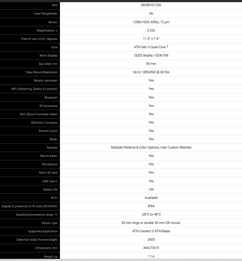 ATN Mars 5 XD EVO 1280 2–20×50 to najnowsza generacja celowników termowizyjnych dla profesjonalnych użytkowników. Urządzenie zostało zaprojektowane z myślą o myśliwych, służbach mundurowych oraz osobach wymagających najwyższej precyzji i niezawodności. Dzięki sensorowi o wyjątkowej rozdzielczości 1280×1024 px oraz nowoczesnemu procesorowi Gen V Quad Core, celownik zapewnia krystalicznie czysty obraz i zaawansowane wsparcie balistyczne.